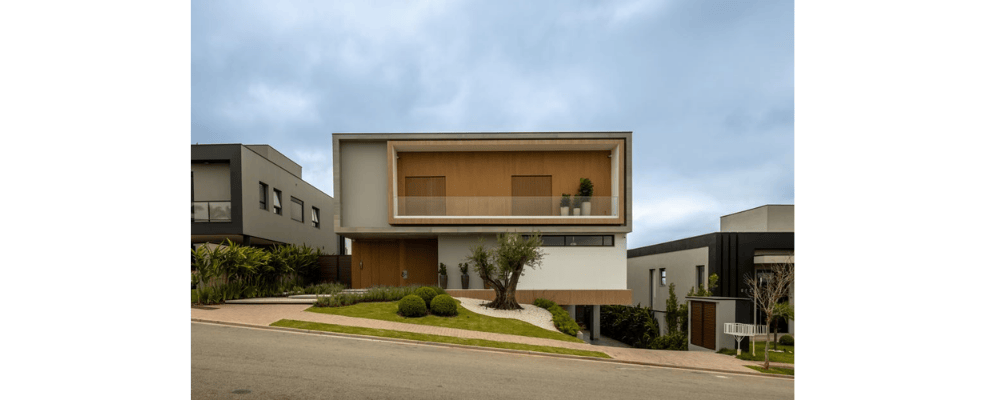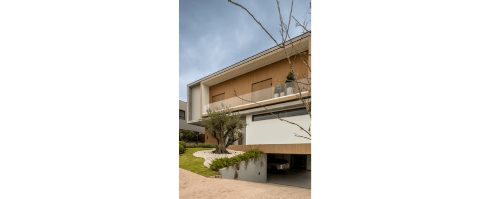 Entre os desafios mais comuns está o posicionamento da garagem. Em muitos projetos convencionais, vagas para três ou quatro veículos ocupam grande parte da fachada. Em terrenos em declive, porém, é possível posicionar a garagem em um pavimento inferior, o que libera a fachada principal e valoriza o desenho arquitetônico.