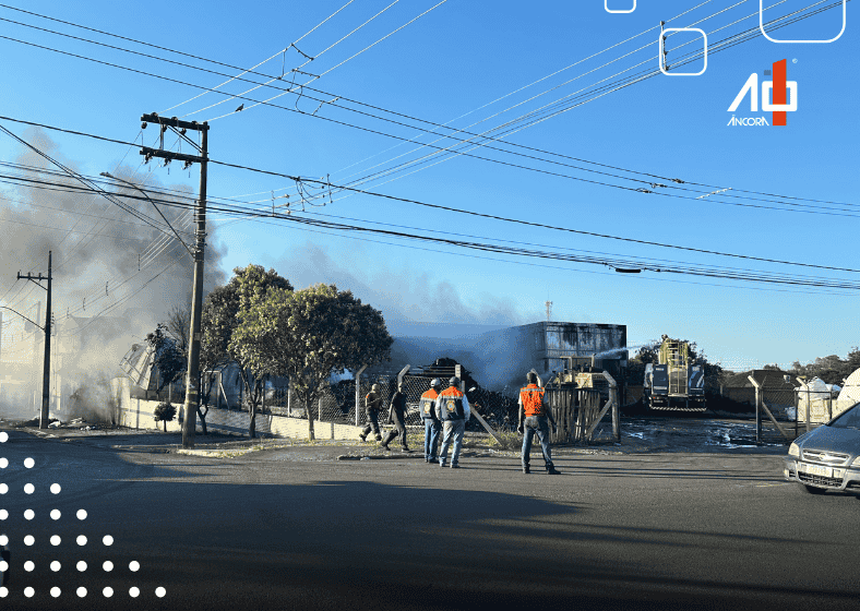 Atualização: A equipe do Âncora 1 retornou ao local entre 17h40 e 18h para uma verificação atualizada da situação. Ainda há focos de incêndio no interior do galpão, mesmo com o fogo oficialmente controlado. A fumaça que havia se tornado branca no início da tarde voltou a oscilar entre tons claros e escuros, indicando a queima de materiais remanescentes.