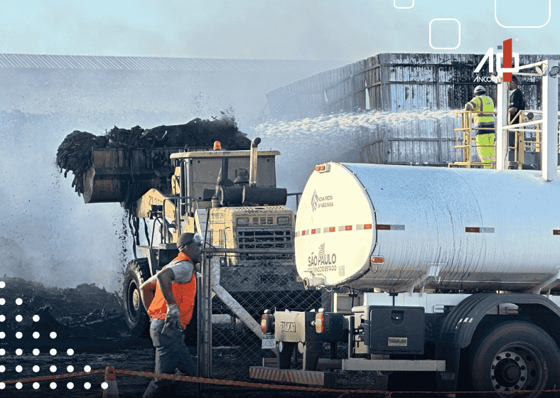 Por volta das 13h40, o cenário começou a mudar. A fumaça escura deu lugar à fumaça branca, indicando que o incêndio estava controlado e que o restante do material queimava de forma residual. A estrutura do galpão havia cedido, e o trabalho de rescaldo seguia para evitar reignições.