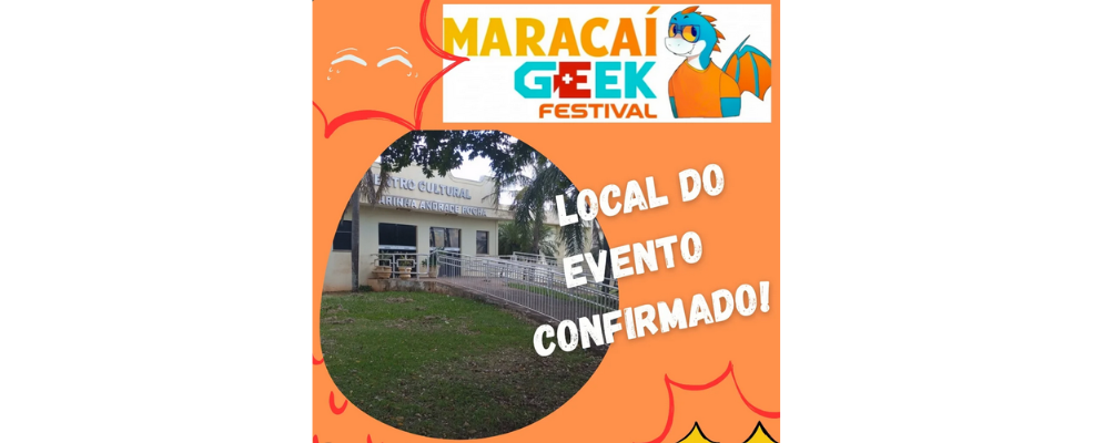 O Maracaí Geek Festival já tem data e local definidos. O evento será realizado no dia 18 de julho de 2026, um sábado, a partir das 13h30, no Centro Cultural de Maracaí, localizado na Rua José Pinto da Silva, 399.